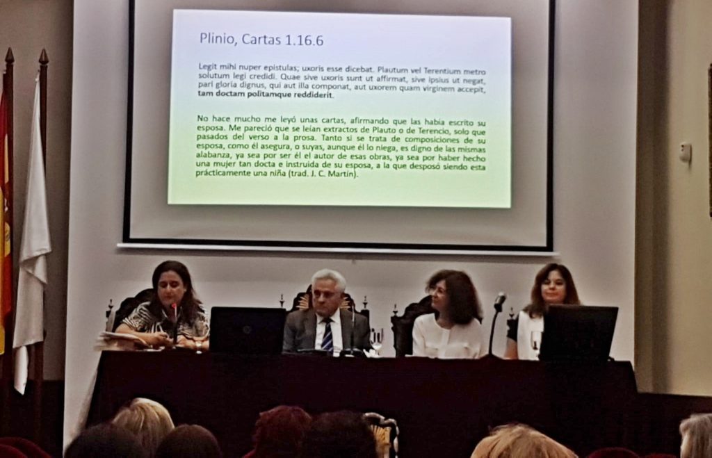 El día 4 de octubre Rosario Moreno Soldevila, Catedrática de Filología Latina de la Universidad Pablo de Olavide, puso el foco en la educación de las mujeres romanas y en su papel en el ambiente literario y cultural, un rol que no podemos calificar de meramente pasivo (como inspiradoras o lectoras). Al contrario, presentó algunos ejemplos de mujeres patronas de la cultura y la literatura—con especial atención a los epigramas de Marcial—e incluso habló del caso de una empresaria teatral, Umidia Cuadratila. A continuación, la profesora Alicia Ruiz Gutiérrez, Catedrática de Historia Antigua de la Universidad de Cantabria, hizo un extenso recorrido por el imperio romano para demostrar la presencia pública de las mujeres en la vida cívica en el ámbito provincial, a través los sacerdocios, el patronato y la munificencia. En este último ámbito la profesora Ruiz destacó la figura de Plancia Magna, destacada munificente de la ciudad de Perge (Turquía).